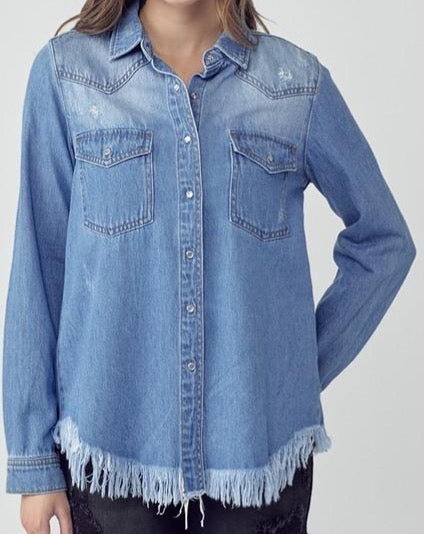 Frayed Hem Denim Shirt