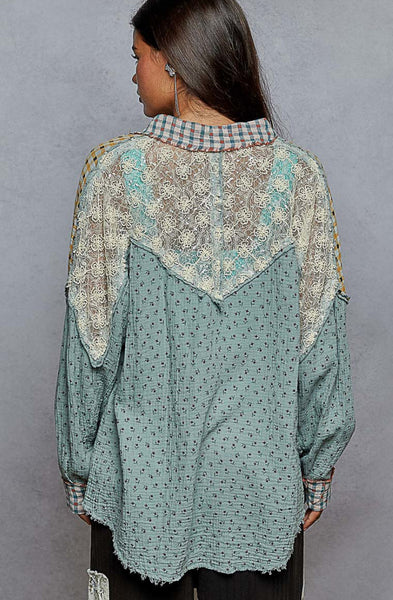 Mixed Fabric Button Down