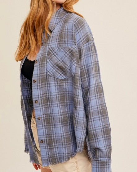 Flannel Button Down - Blue & Pink