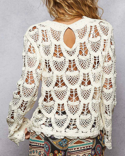 Open Knit Keyhole Long Sleeve - Cream