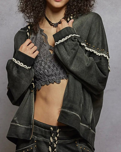 Stud Detail Black Zip Up Hoodie